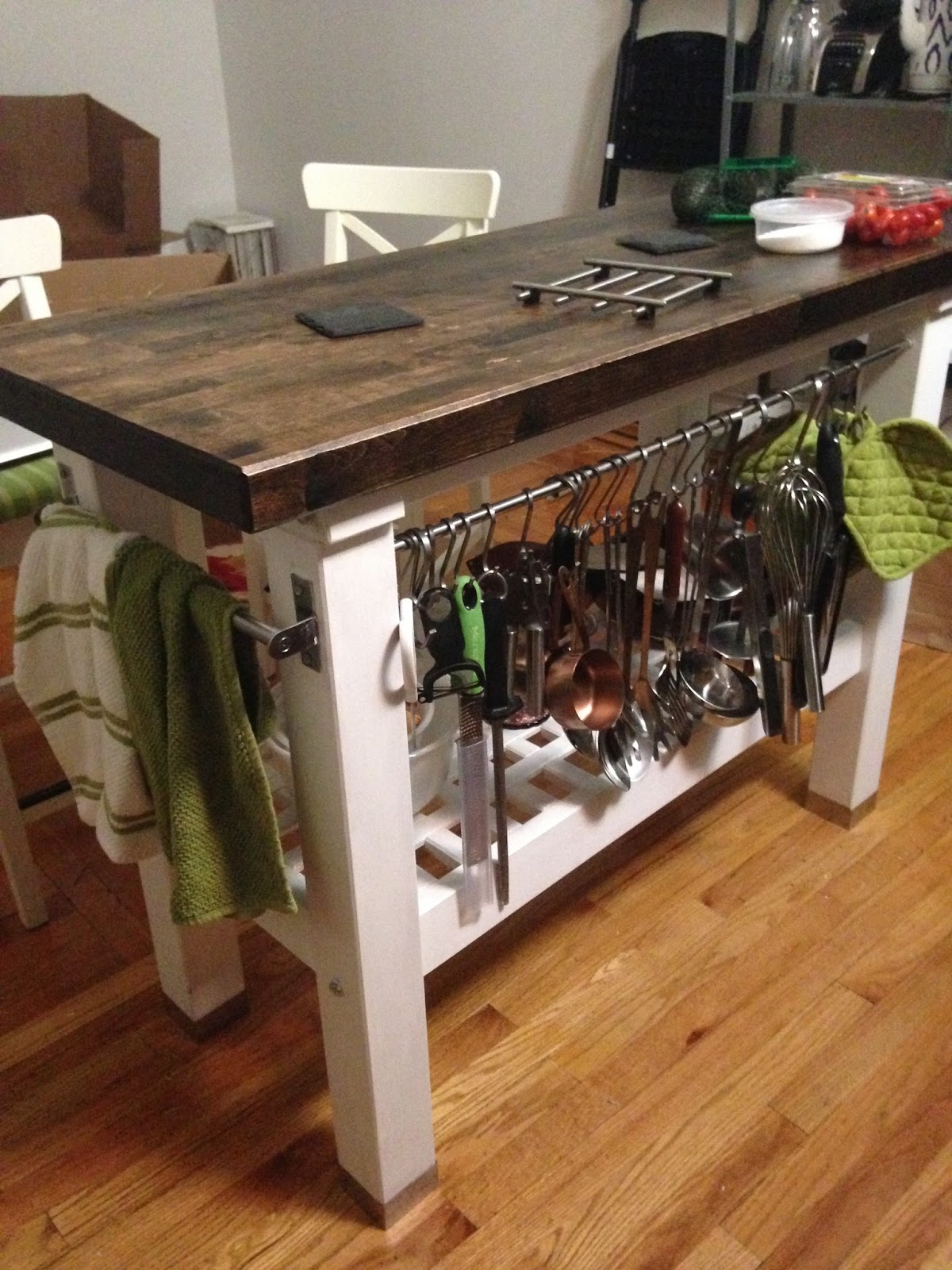 Love the look of the ikea groland island with the base painted white.